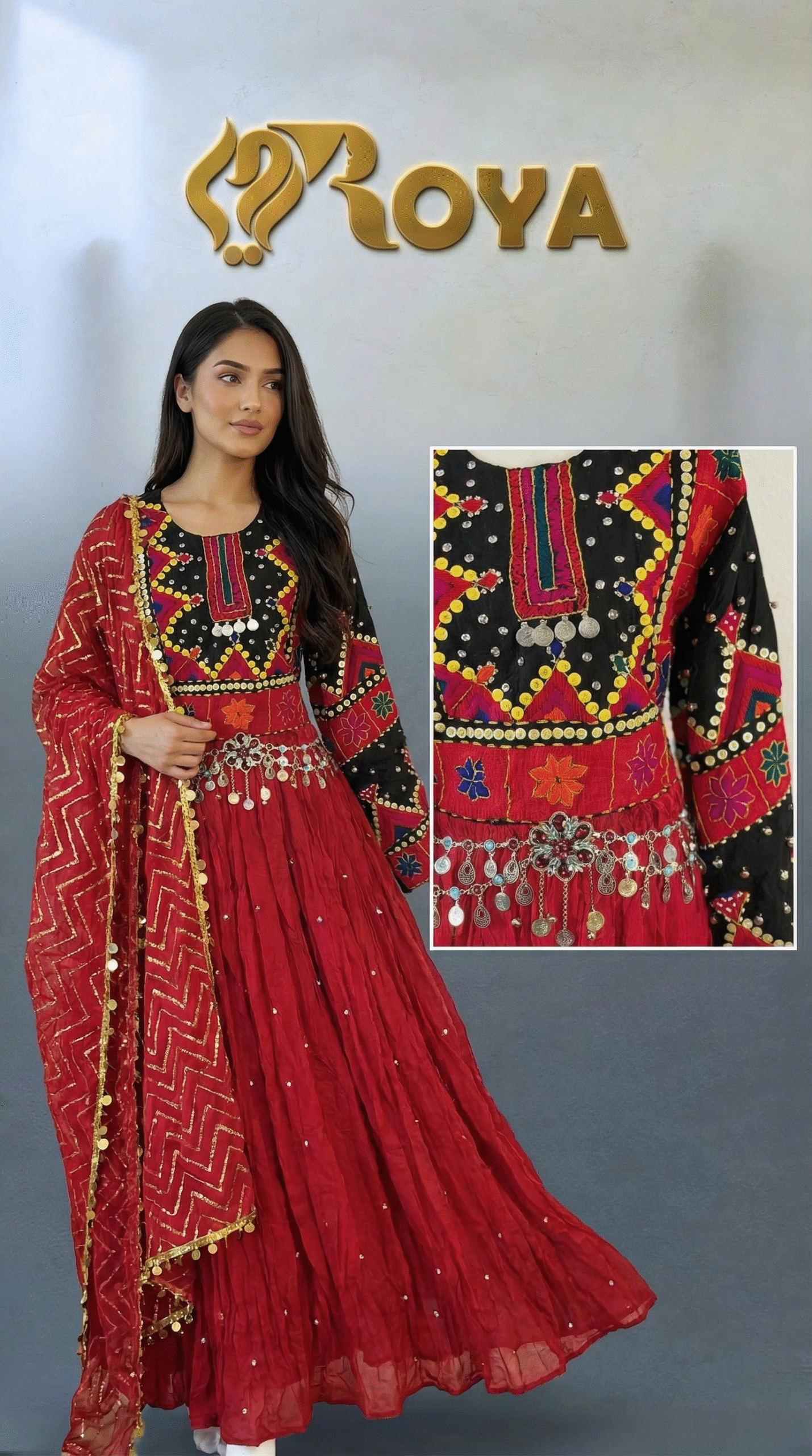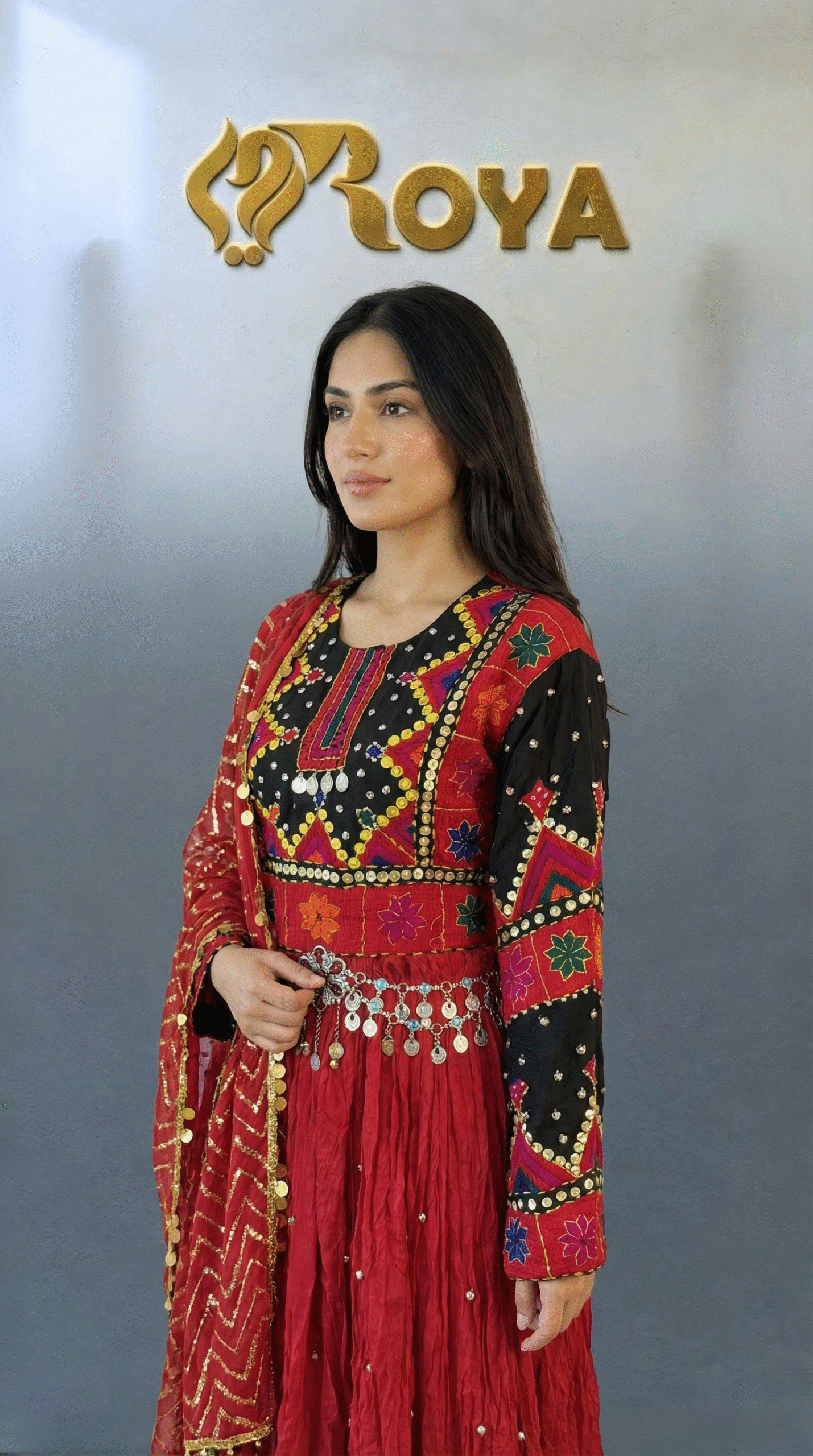 The Ariana Kochi Dress is a striking example of authentic Afghan craftsmanship and cultural elegance. Designed with a richly embroidered bodice inspired by traditional Kochi patterns, this dress showcases bold geometric motifs, vibrant threadwork, and classic mirror accents that reflect Afghan heritage.
